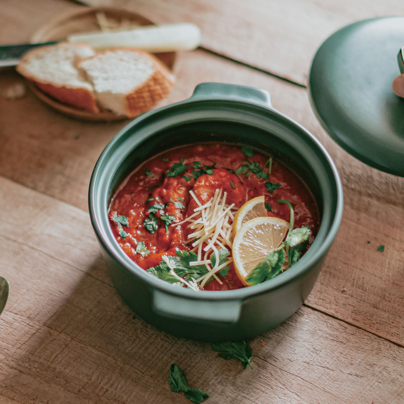 The Ecolon™ non-stick coating is made of natural materials and requires a bit of oil every time you cook to create a natural barrier between the food and the pan.